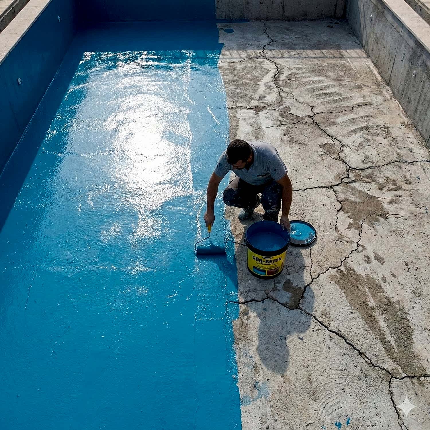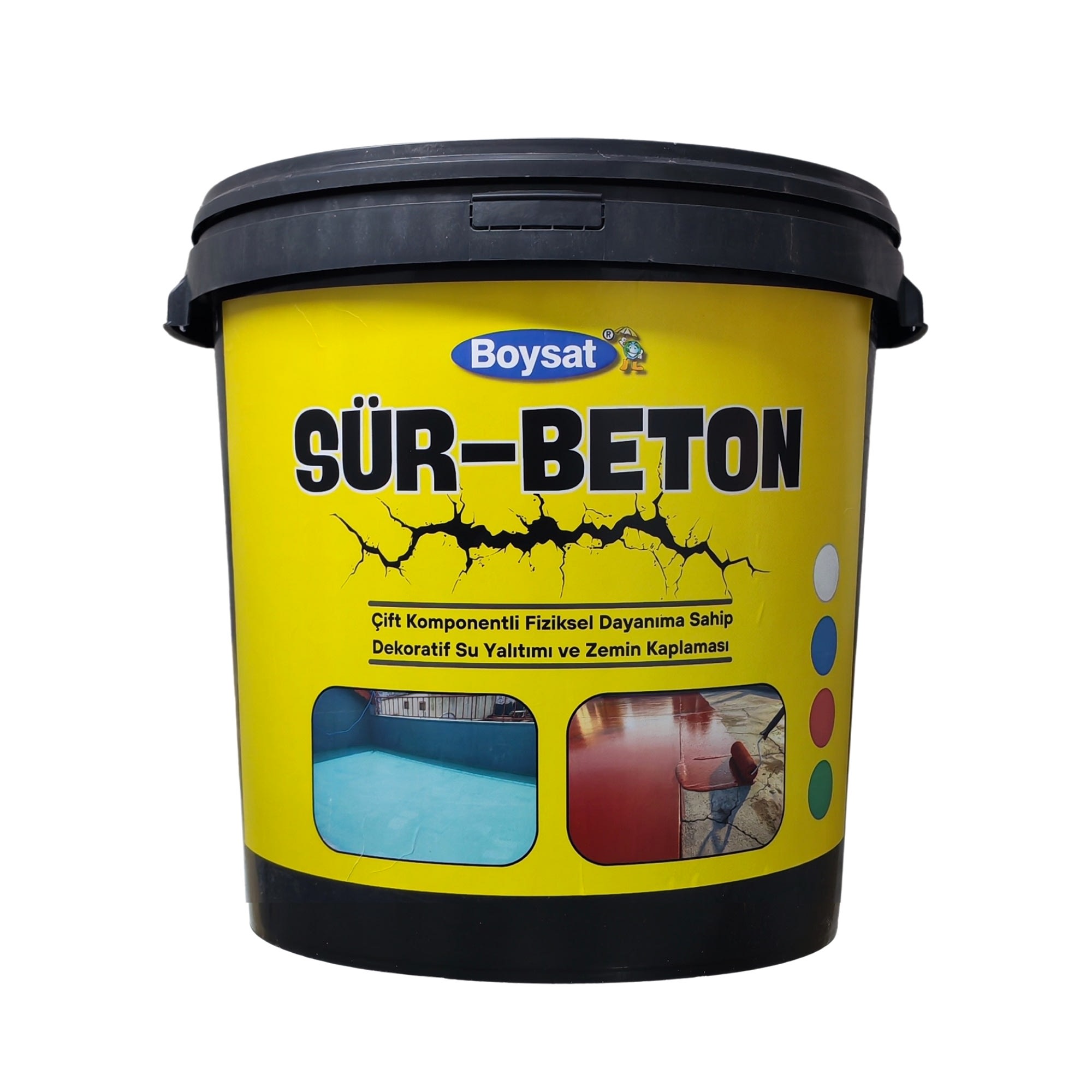 - Uygulama Talimatları: Uygulama yapılacak yüzey; kir, toz, yağ vb. kabarmış kalıntılardan arındırılmalı, temiz ve kuru olmalıdır. Uygulama yapılacak yüzeyin aderansını artırmak için ürünün yanında gelen konsantre astarı 4 kg su ile karıştırıp rulo yardımıyla yüzey astarlanmalıdır. Sür-Beton içeriğindeki toz ve sıvı bileşenlerini kovaya boşaltın. Daha sonra matkap yardımıyla bir kaç dakika karıştırın, ürün kullanıma hazır hale gelecektir. Ürün yüzeye iki kat halinde rulo ile uygulama yapılır. Uyguladıktan sonra ürün hava almayacak şekilde saklanmalıdır, yoksa donabilir. Katlar arası bekleme süresi 24 saattir. + 5 C ile + 35 C arasında uygulama yapılmasına dikkat edilmelidir.